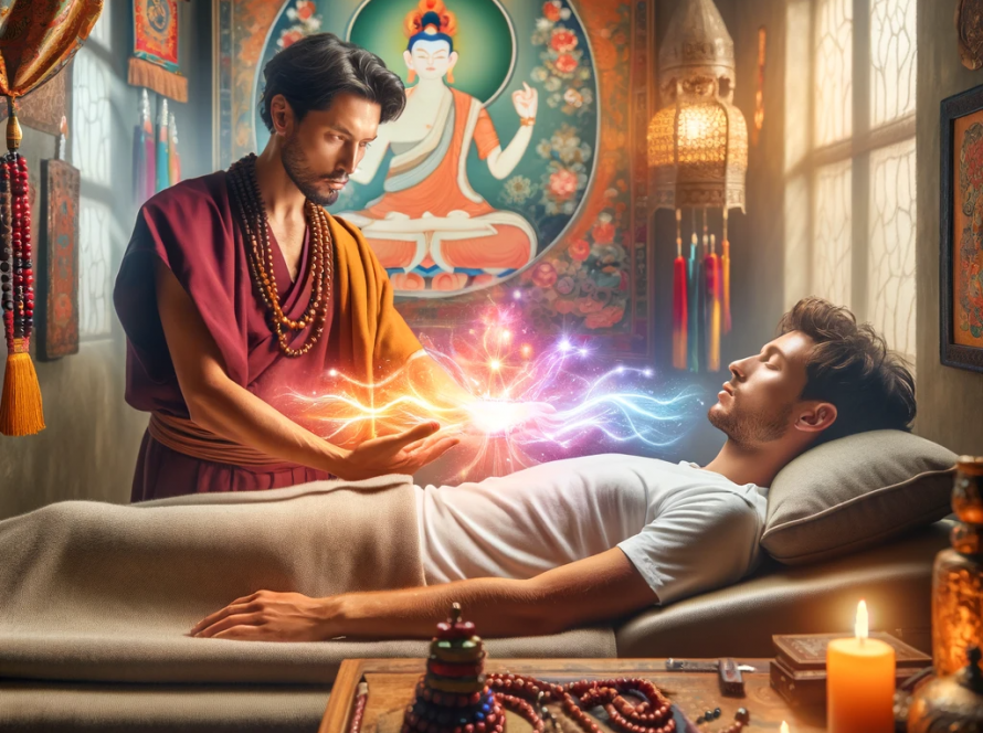 Les soins énergétiques tels que nous les pratiquons, sont enraciné dans la tradition du Vajrayana, représente un système de pratique spirituelle qui a émergé au sein du bouddhisme tibétain vajrayana.